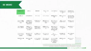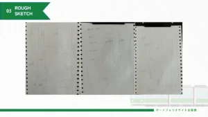最初はデザインが浮かびませんでしたが、最初に誰が見るかを考えた時に自分であることに気付きました。なので、自分自身に想いをぶつけるポートフォリオと思い作成しました。